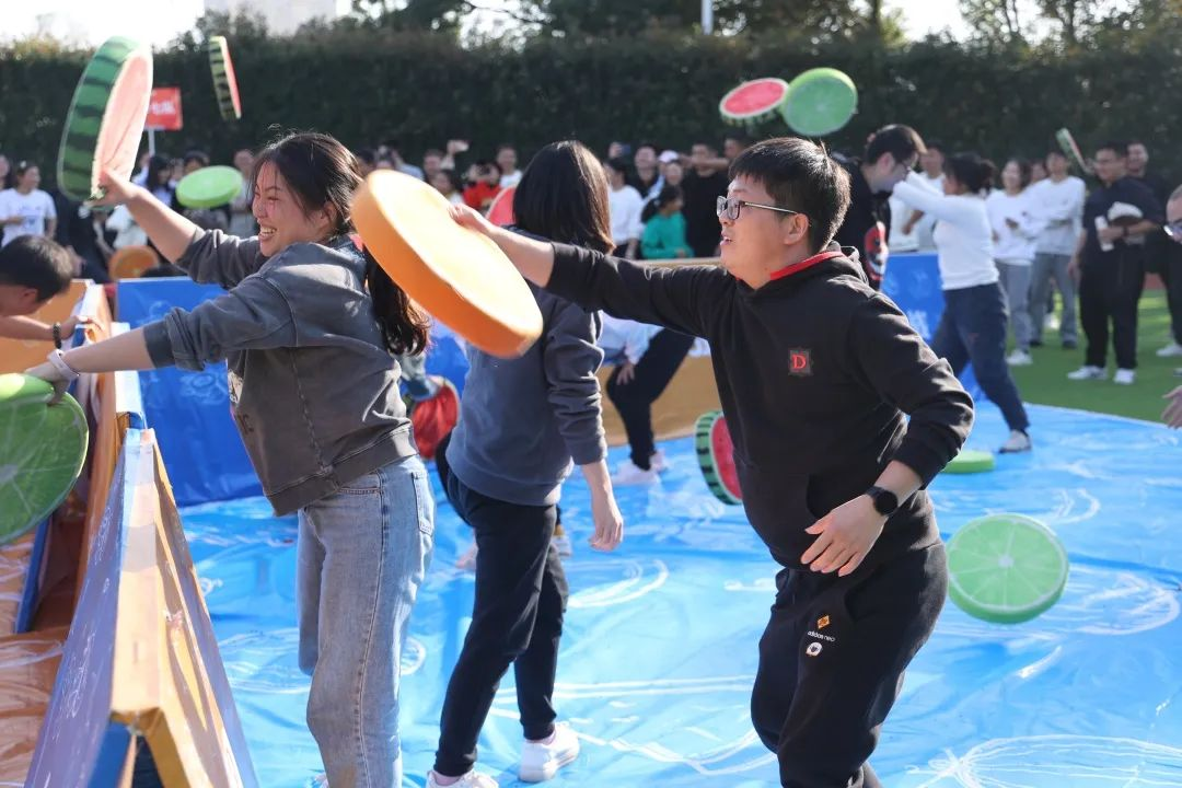 本次嘉年华有为运动健儿们设置的田径、技巧篮球、技巧足球、技巧羽毛球等竞赛项目,有体力与脑力双重挑战的8字跳绳、合力建塔、穿越火线、水果大战、齐心协力、雷霆战鼓等团体趣味项目,还有燃烧卡路里、赢取鏖战奖励的盲眼打人、螃蟹跑、巨型摇色子、沙包投准、揪尾巴、旱地冰壶等个人挑战项目。通过参与项目,可以赢得对应的团体积分或礼品券,兑换冰糖葫芦、棉花糖、泥人等甜蜜有趣的奖品。