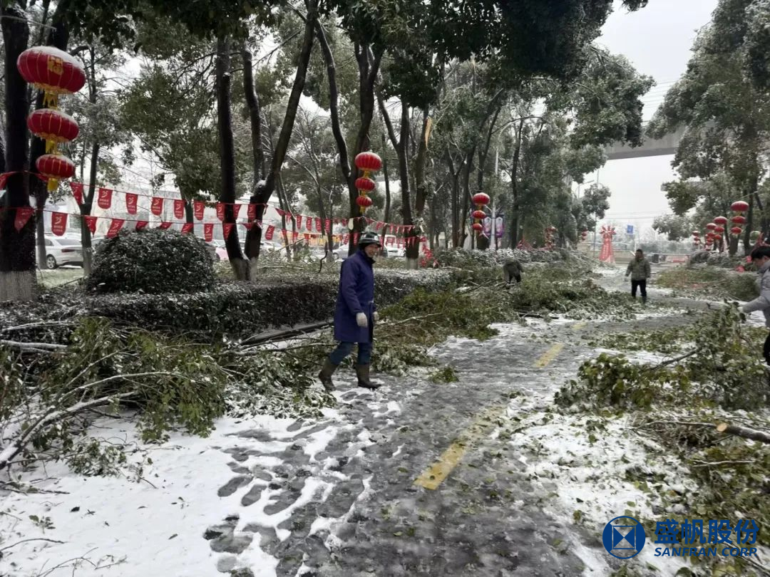 为不留一丝隐患,尽快恢复通行,后勤一线破冰保畅员工立即投入到铲雪、清理断枝的抢修行动中。
