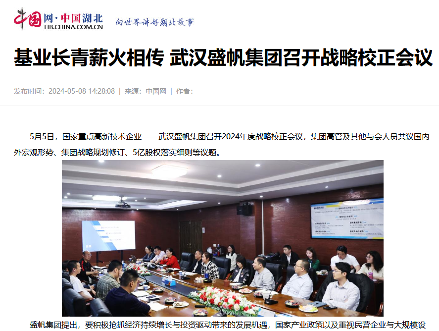 5月5日,国家重点高新技术企业——武汉德信网页版集团召开2024年度战略校正会议,集团高管及其他与会人员共议国内外宏观形势、···
