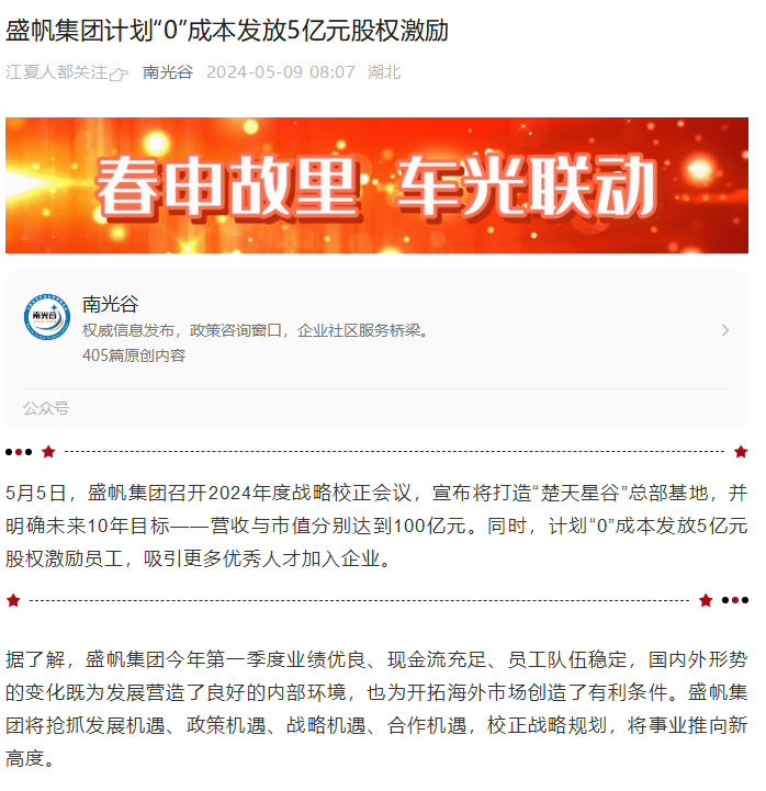 5月5日,德信网页版集团召开2024年度战略校正会议,宣布将打造“楚天星谷”总部基地,并明确未来10年目标——营收与市值分别达···