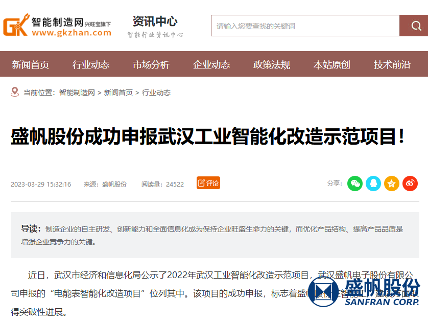 近日,武汉市经济和信息化局公示了2022年武汉工业智能化改造示范项目,德信平台申报的“电能表智能化改···
