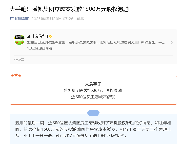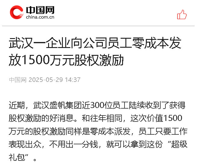近期,武汉德信网页版集团近300位员工陆续收到了获得股权激励的好消息。和往年相同,这次价值1500万元的股权激励同样是零成本派···
