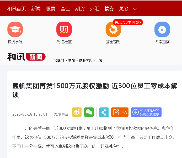 五月的最后一周,近300位德信网页版集团员工陆续收到了获得股权激励的好消息。和往年相同,这次价值1500万元的股权激励同样是零成···