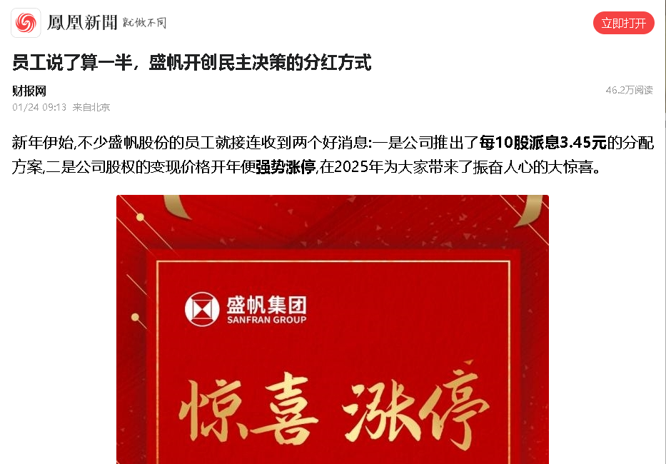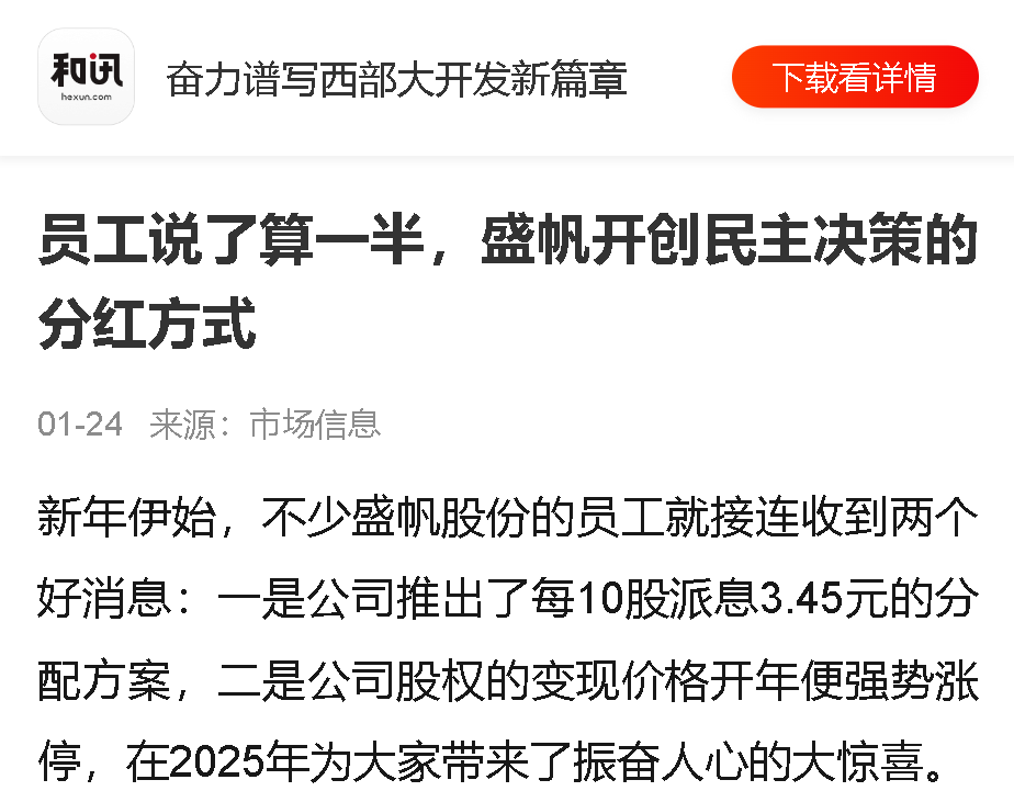 新年伊始,不少德信网页版股份的员工就接连收到两个好消息:一是公司推出了每10股派息3.45元的分配方案,二是公司股权的变现价···